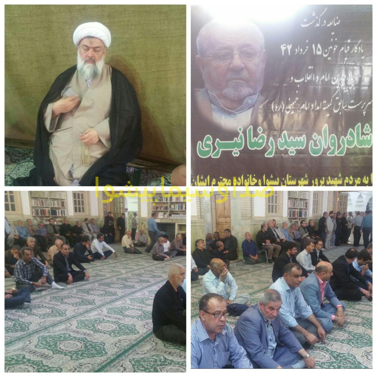 به گزارش خبرگزاری صدا و سیما؛ بمناسبت درگذشت آقای سید رضا نیری رئیس اسبق کمیته امداد امام خمینی ره مراسمی به پاس خدمات این بزرگ مرد ولایی که نقش بسزایی در شکل گیری نهضت 15 خرداد در منطقه پیشوا داشت در آستان مقدس حضرت جعفربن موسی ع برپا شد.