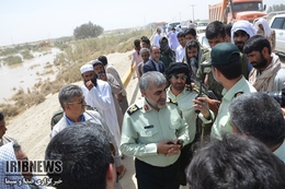 بازدید سردار قنبری فرمانده انتظامی سیستان و بلوچستان از مناطق سیل زده شمال استان