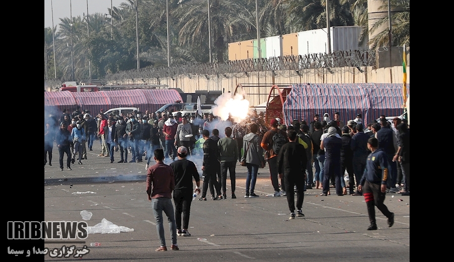 زخمی شدن ۲۰ معترض عراقی مقابل سفارت آمریکا در بغداد
