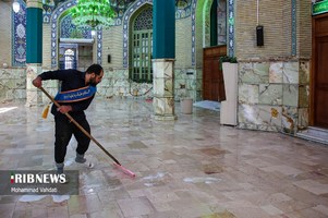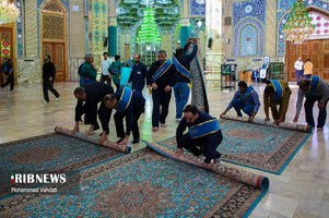 در آستانه ولادت حضرت ولیعصر (عج) مسجد مقدس جمکران توسط خادمین این مسجد غبار روبی و شست شو شد