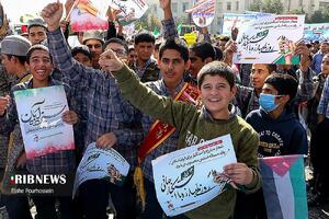 صبح امروز سیزدهم آبان ماه ۱۴۰۲، راهپیمایی روز ملی مبارزه با استکبار جهانی، و مراسم یوم‌الله ۱۳ آبان، با حضور مردم و دانش‌آموزان و با شعار محوری «نظم نو جهانی با نسل آرمانی» در شیراز و جزیره کیش و کاشان و سایر استان‌های کشور برگزار شد. حاضران در راهپیمایی امروز، ضمن محکومیت جنایت‌های رژیم غاصب صهیونیستی، با همدستی آمریکای جنایتکار، حمایت خود را از آرمان‌های انقلاب اسلامی و گروه‌های مقاومت فلسطینی اعلام و همراهی و همدردی خویش با ملت مقاوم و مظلوم غزه را، اعلام می‌نمایند.