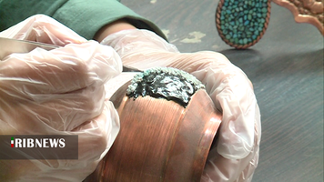 در این هنر زیبا سنگ فیروزه بر روی مس حک می شود و علاوه برخلق یک اثر زیبا نوآوری هم  در ظروف مسی شده است.